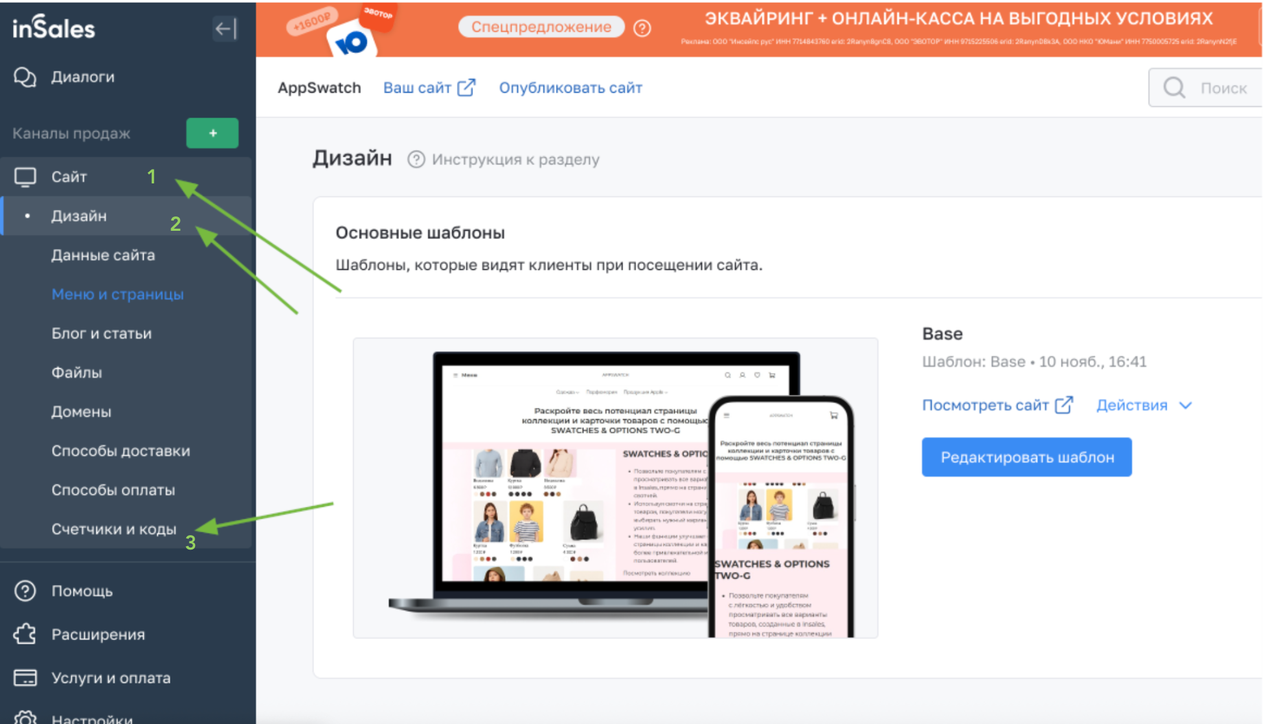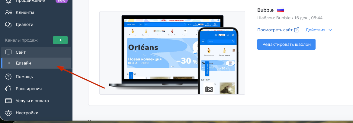 Открываете в бэк-офисе раздел "Дизайн"