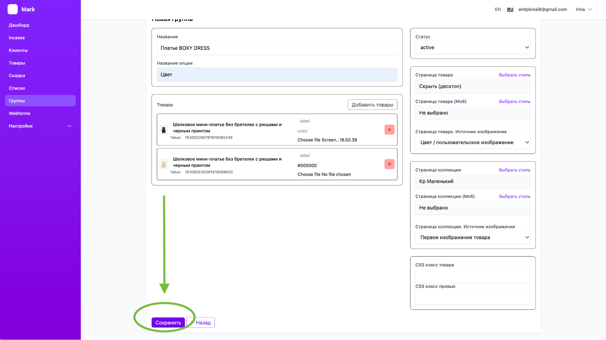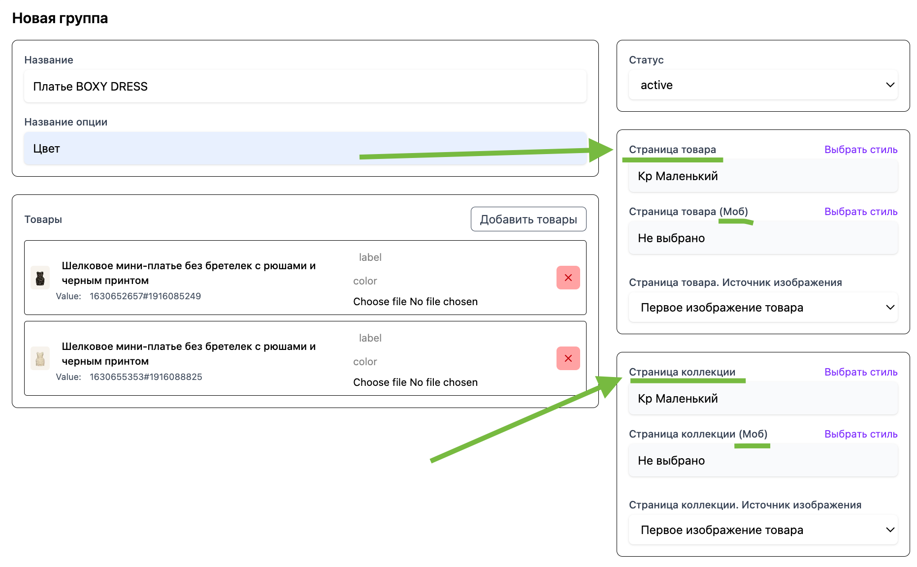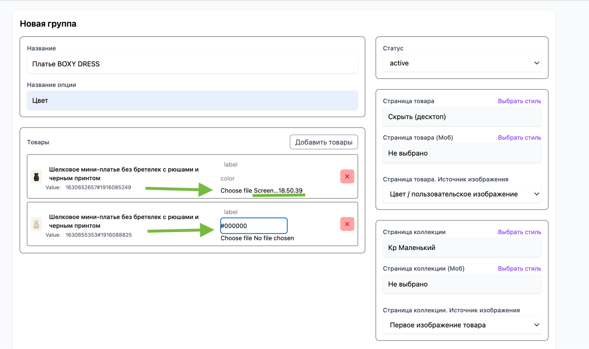 СОЗДАНИЕ ГРУПП ТОВАРОВ & ОБЪЕДИНЕНИЕ ПО ЦВЕТАМ