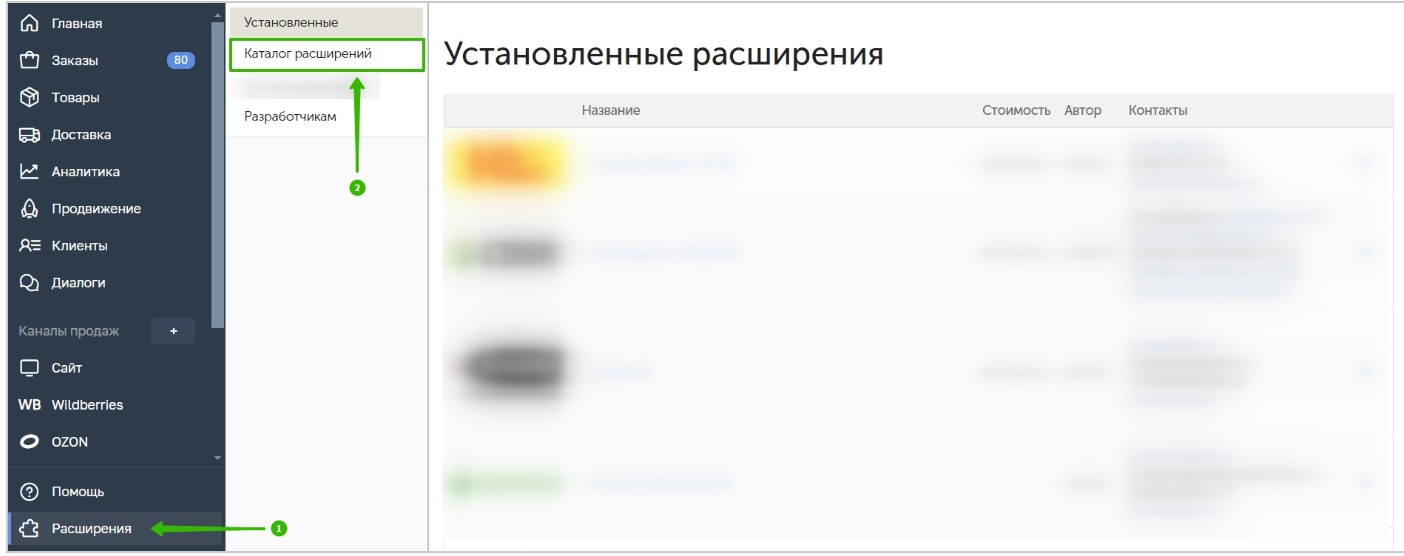 Перейдите в раздел Расширения → Каталог расширений: