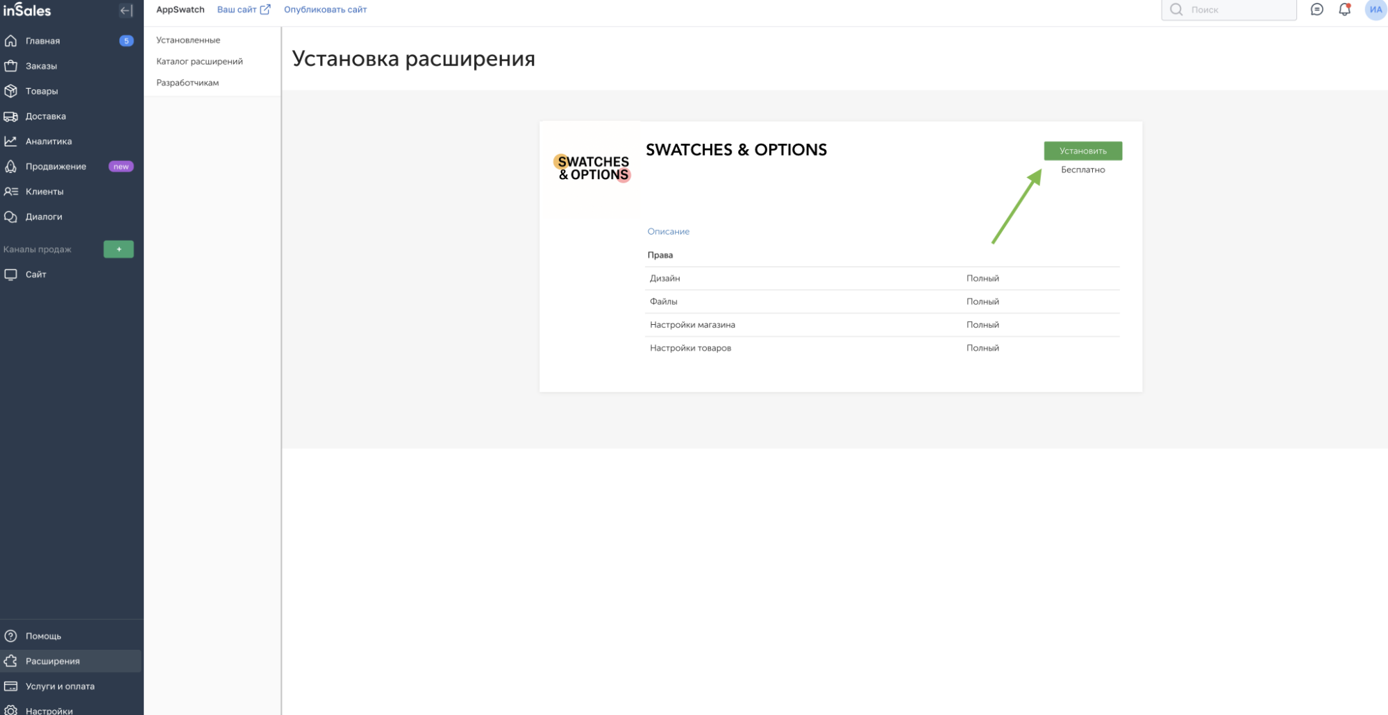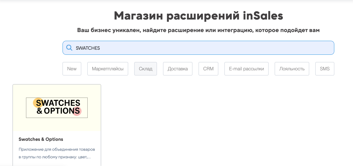 Руководство по установке приложения SWATCHES & OPTIONS на InSales